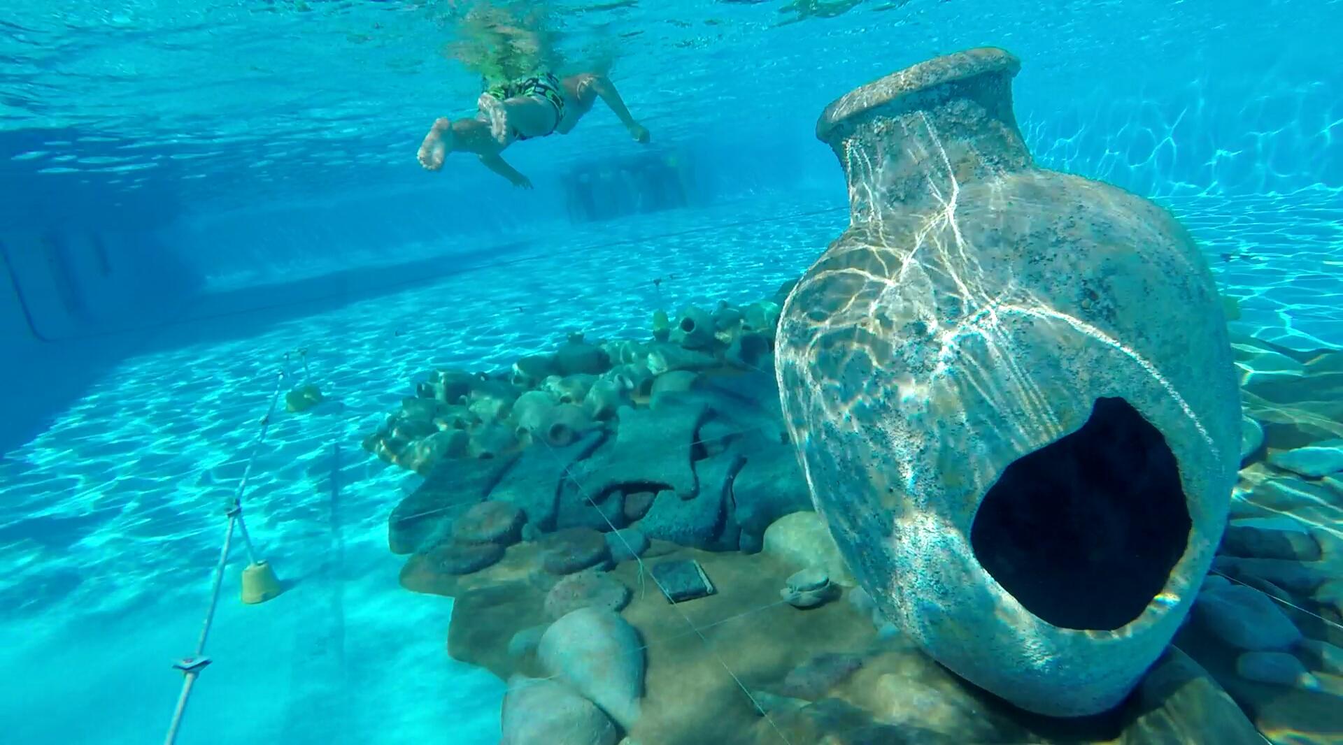 Ulumburun un naufragio en tu piscina reproduce en la Piscina de La Dehesa de Alovera un yacimiento arqueológico subacuático de un barco hundido frente a las costas de Turquía hace más de 3.300 años.