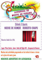 Por otra parte, el sábado, 9 de agosto, el cómico Roberto Chapu, ganador del primer concurso de monólogos del programa de televisión 'El Hormiguero', visita la plaza del Centro Joven para presentar a partir de las 22 horas 'Roberto Chapu es padre', texto con el que está recorriendo escenarios de todo el país. La entrada es libre.