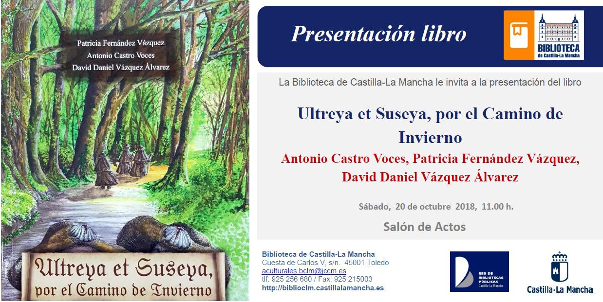 El sábado 20 de octubre, en la Biblioteca de CLM, a las 11 horas, se presenta el libro “Ultreya et Suseya, por el camino de invierno”. El libro, que contiene unas bellísimas ilustraciones con las rutas de este Camino de Santiago de invierno, es una historia de amor que narra las peripecias de Breixo y Fronilde, dos jóvenes enamorados que quieren casarse a pesar de cierta oposición familiar.