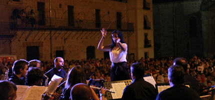 Además de ponerle el fondo musical al soneto, que el pregonero declamó embargado de emoción -fue la única vez en la que, levemente, le flaqueó la voz- la Banda de Música de Sigüenza, que anoche integraron 23 miembros, por quince del año pasado en su primera aparición en San Roque tras su recuperación, incluidos tres niños que han cursado este año la disciplina de prebanda en la Escuela Municipal de Música, interpretó otros cinco temas más: tres bandas sonoras, que fueron La Misión, el Rey León y una recopilación de Grease, el pasodoble Aires Jadraqueños, y el himno de Sigüenza, compuesto en los años ochenta por el que fuera director de la banda entre los años 1958 y 1962, Rafael Martínez Castillo.