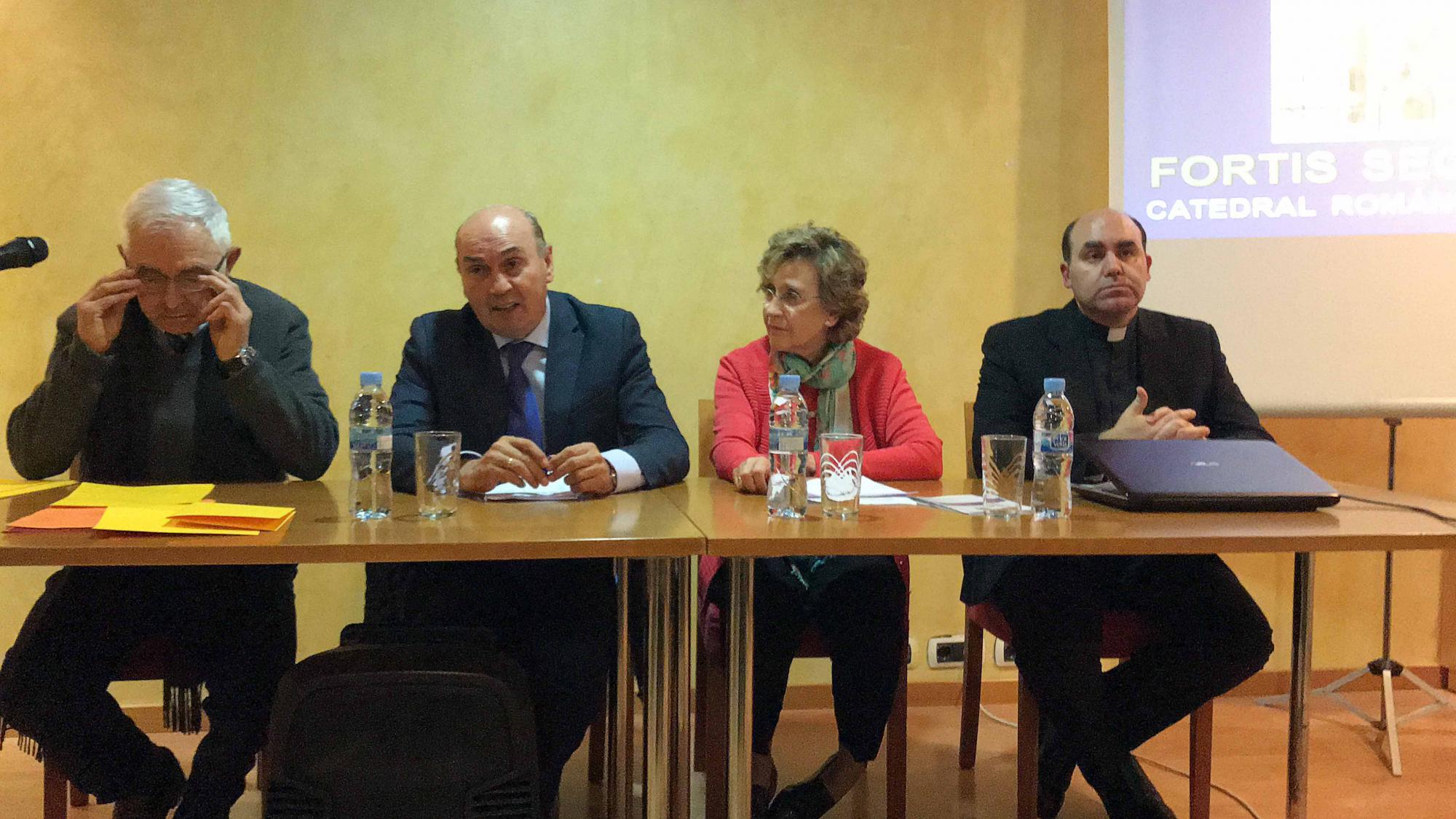 Cabañas afirmó que, con el Coloquio, UAH y CIDHC hacen su aportación a la magnífica exposición que se puede admirar en el Museo Diocesano sobre la construcción de la Fortis Seguntina, ahora en su primera fase, con este ciclo de conferencias y charlas que la contextualizan la exposición. La directora del Coloquio afirmó que en él, van a participar los especialistas que mejor conocen la selección de temas elegidos, en relación con la exposición, para terminar diciendo que “lo más bonito de este proyecto es que representantes políticos, culturales, de la Universidad de Alcalá, empezando por el vicerrector del Campus de Guadalajara y Relaciones Institucionales de la UAH, Carmelo García, sin importarnos a nadie otra cosa que no sea la cultura, el patrimonio, y la divulgación del conocimiento de ese patrimonio y de la historia de esta ciudad, nos hemos unido para acercarles tanto la muestra como este Coloquio; insisto, con el único interés de estudiar nuestras raíces y nuestra historia”. VER DOLORES CABAÑAS.