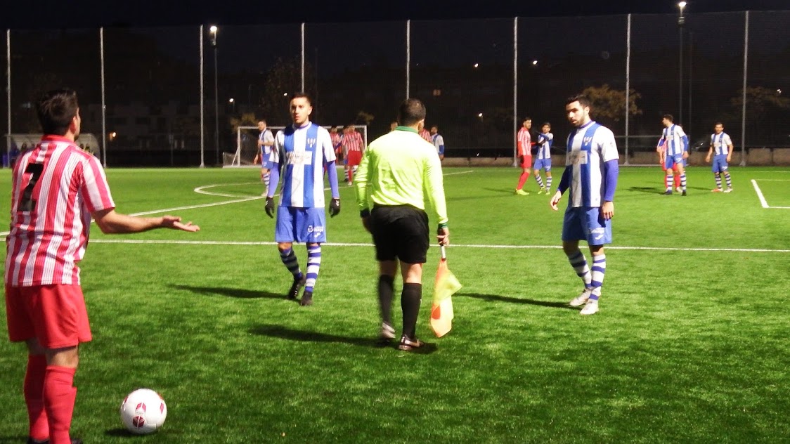 El Hogar Alcarreño sigue dominando y haciendo buen fútbol, sobre un césped rapidísimo por el agua acumulada, se sigue llegando con peligro hasta los aledaños del portal forastero, el balón se pasea en un par de ocasiones por delante de la portería del Torrijos sin encontrar rematador por auténtica mala fortuna y cuando mejor lo hacía el equipo blanquiazul, se produce un contragolpe vertiginoso del conjunto toledano, con pase de la muerte posterior, para que Greuchi remache sin remisión a las mallas. Corría el minuto 15.