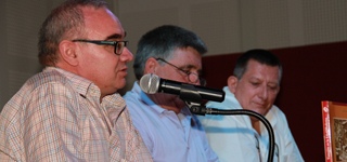 El historiador estuvo acompañado en la mesa de ponentes por el alcalde de Tamajón, Eugenio Esteban de la Morena, que se encargó de presentar al ponente y motivar el encargo del libro, y por Angel de Juan, su editor. "Quiero agradecer a Eugenio Esteban de la Morena la publicación de este libro en unos momentos difíciles para la cultura en general", dijo el autor para empezar. En parecidos términos se expresó el editor, que además ensalzó la figura como historiador.