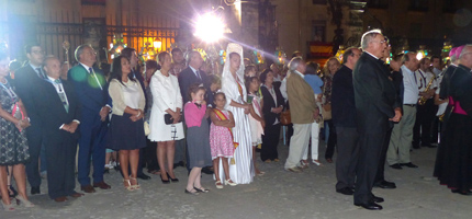 Mientras esperaban la caída de la tarde, en la catedral -abarrotada de público y devotos de la Virgen de la Mayor- se rezaban los misterios bajo la dirección del sacerdote Jesús De las Heras que también daba las pautas de organización de la procesión que momentos después inundaría de luz las calles de la ciudad mitrada.