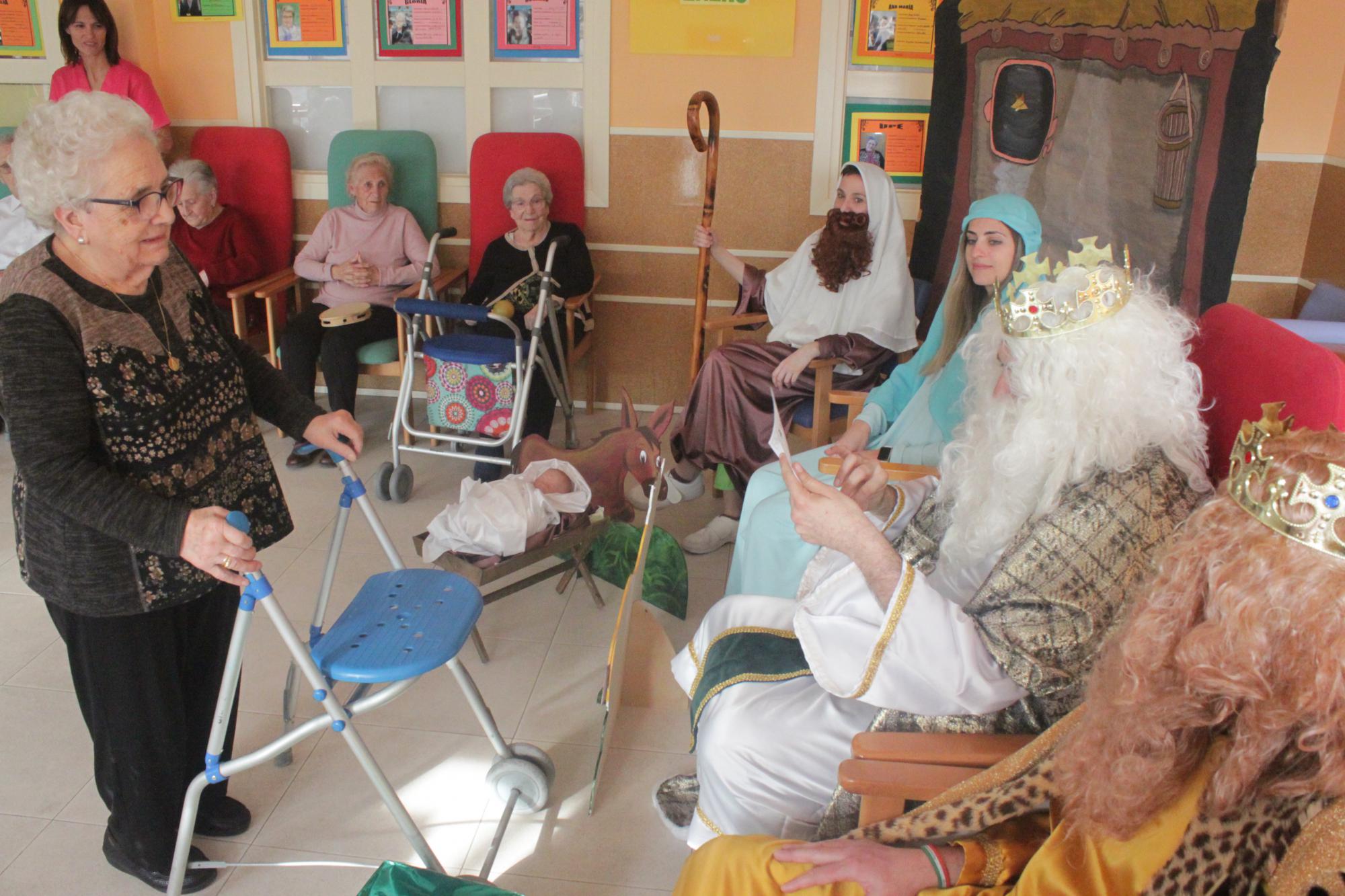 Ha sido una visita muy fructífera, en la que todos los usuarios y usuarias han esperado a los Magos en el salón de usos múltiples de la primera planta, acompañando a un Belén Viviente montado por las trabajadoras del centro.