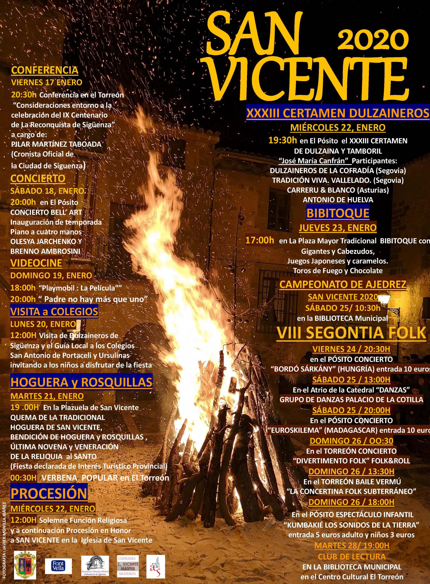 Llega entonces el momento de prender la hoguera. De eso se suelen encargar Jaime Gómez Olalla, Jesús Canfrán y Enrique Mayor. En pocos minutos, la temperatura sube, de manera que, por frío que haga en esos días en la ciudad del Doncel -aunque como dice el refrán local, por San Vicente, el invierno pierde un diente- sobra la chaqueta. Las piedras de los edificios colindantes se tiñen con el reflejo del amarillo y rojo de las llamas, mientras que los niños, expectantes, se arremolinan en torno a la hoguera. Esperan el momento en el que los troncos se convierten en carbón, para tiznarse con ellos las caras, y para tiznárselas después a los amigos.
