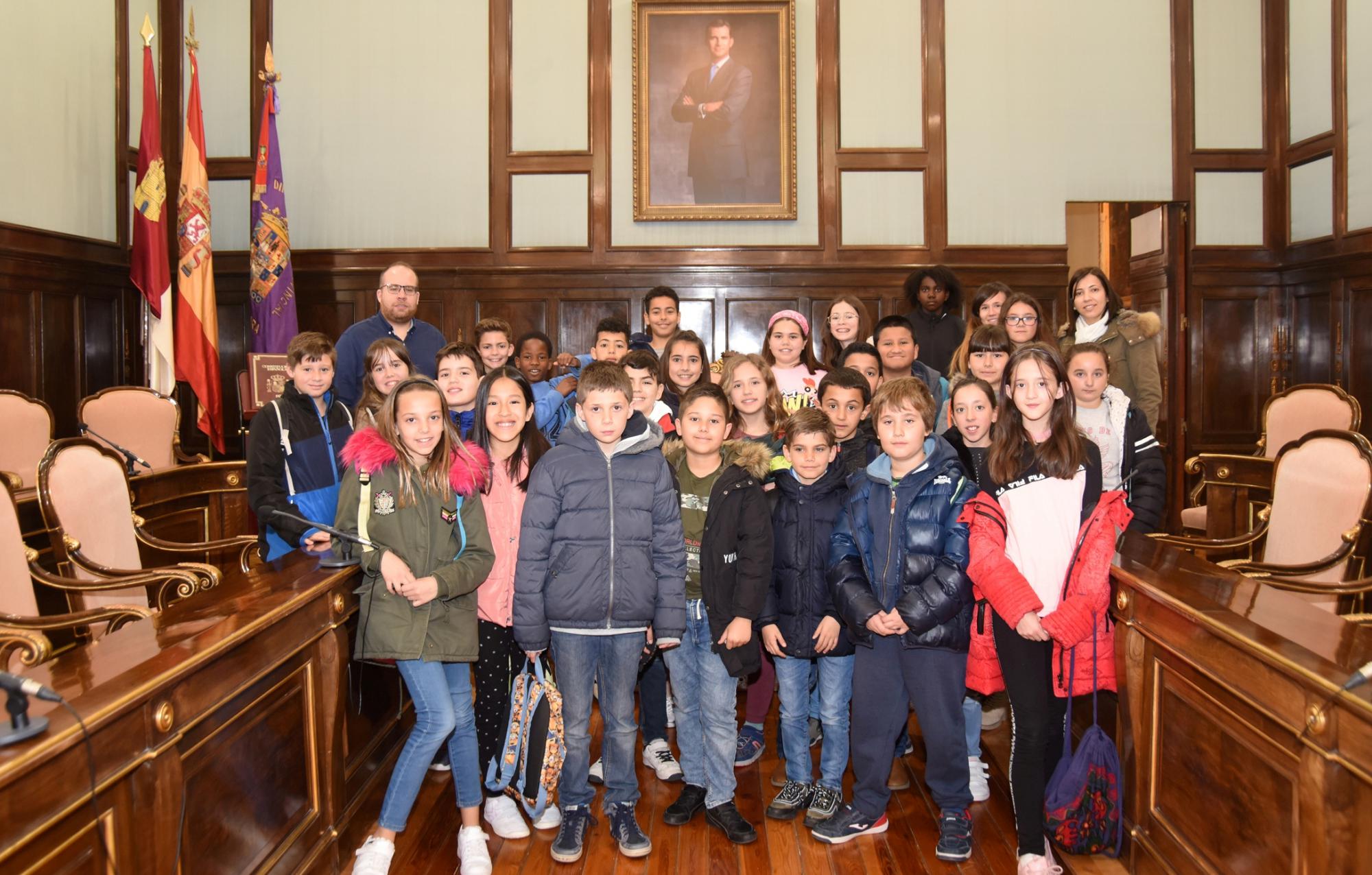 Un grupo de alumnos de 5º de Educación Primaria del CEIP La Espiga han realizado una visita guiada al Palacio Provincial, sede oficial de la Diputación de Guadalajara, donde han sido recibidos por el vicepresidente 1º, Rubén García Plaza.