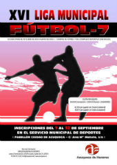 Hasta el día 12 de septiembre, está abierto el plazo de inscripción en la XVI Liga Municipal de Fútbol 7 de Azuqueca de Henares, que se disputará entre los meses de octubre de 2014 y mayo de 2015 en los campos del complejo deportivo San Miguel.