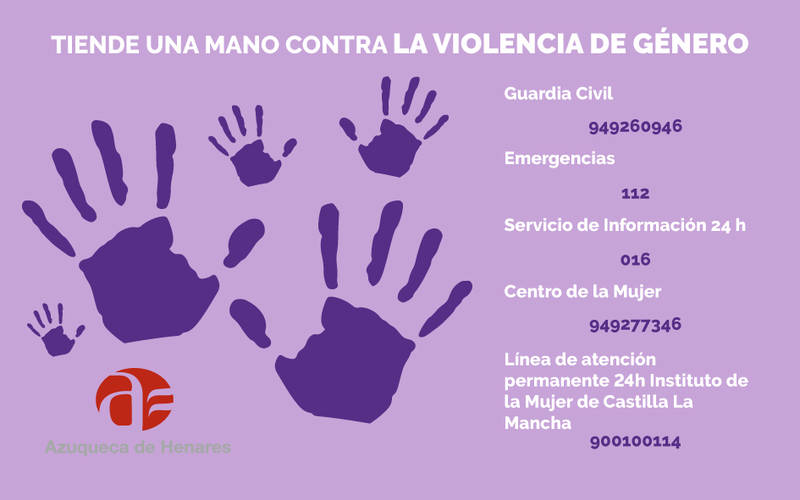 Bajo el lema 'Tiende una mano contra la violencia de género', la iniciativa se dirige, por un lado, a la población en general y, por el otro, a las víctimas. "En el caso de la ciudadanía, se pretende sensibilizarla para que puedan estar cerca de las mujeres que sufran violencia, apelar a su responsabilidad para denunciar estas situaciones o llamar a los teléfonos de los servicios de emergencia y, por último, aclarar las señales que denotan una situación de violencia de género", detalla la edil. "En cuanto a las mujeres víctimas de violencia de género, con esta iniciativa se les manda un mensaje claro para que tengan la certeza de que no están solas, que seguimos velando por ellas desde todos los recursos y acercarles, a modo de recordatorio, los teléfonos de ayuda: 949 277 346, del Centro de la Mujer de Azuqueca; 016, de información; 112, de Emergencias, y 949 260 946, de la Guardia Civil", insiste Piedad Agudo.