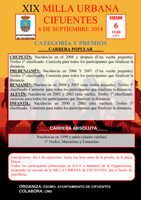 El sábado 6 de septiembre a las 19,00 horas se celebrará la decimonovena edición de la tradicional Milla Urbana en la Plaza Mayor y sus inmediaciones, en la que habrá seis categorías (chupetín, prebenjamín, benjamín, alevín, infantil y absoluta) en categoría de masculino y femenina siendo premiados los primeros puestos con una copa y a todos los participantes que finalicen la carrera con unas camisetas diseñadas para la ocasión donadas por Cesáreo Martín Sanz S.L.