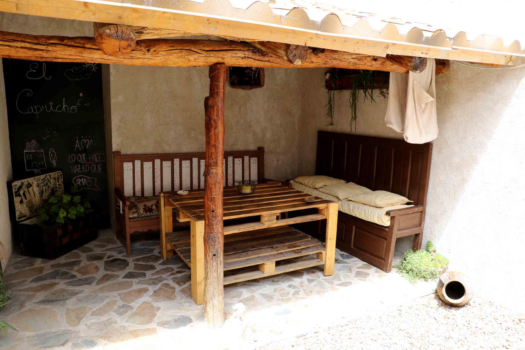 La estructura del edificio es la original, con vigas de madera y ladrillo visto. Ha sido rehabilitada respetando al máximo su esencia. La casa consta, en su planta superior, de dos dormitorios amplios, uno con balcón y otro con techo abuhardillado que le otorga un aspecto acogedor, y un baño completo. En la planta baja hay un aseo, la cocina, de estilo rústico y totalmente equipada, y el salón con chimenea que en invierno le ofrece calidez y confort. La joya de 'El Capricho' es el patio. Distribuido en dos ambientes, barbacoa y cenador, invita a los huéspedes a reunirse al finalizar la jornada para compartir sus experiencias y preparar la siguiente aventura.