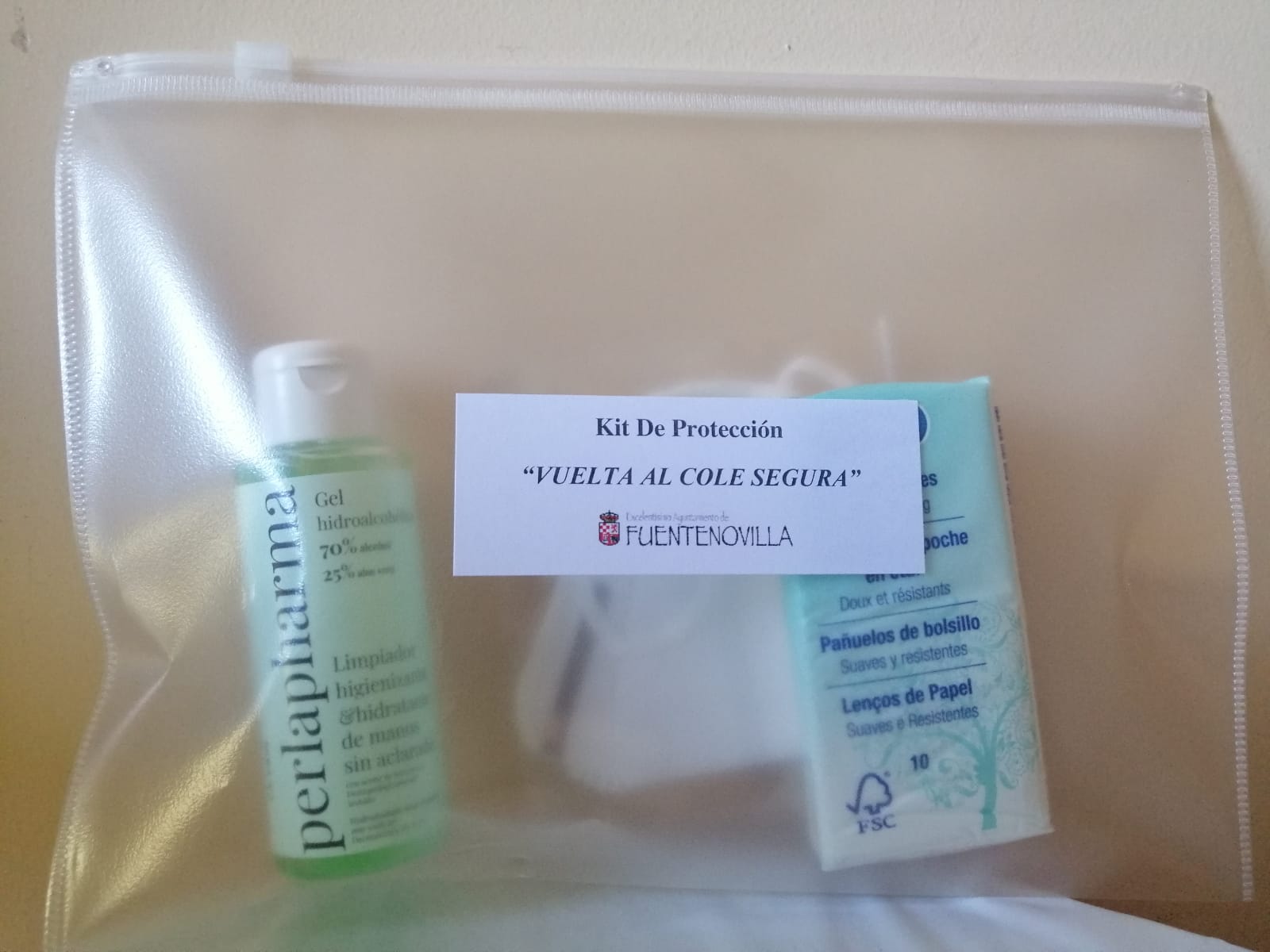 El comienzo de las clases ha tenido lugar esta mañana. El Ayuntamiento ha entregado a cada uno de los alumnos un kit de protección “Vuelta al cole segura”, compuesto por una mascarilla, un paquete de pañuelos y un gel desinfectante, todo ello dentro un neceser individual.