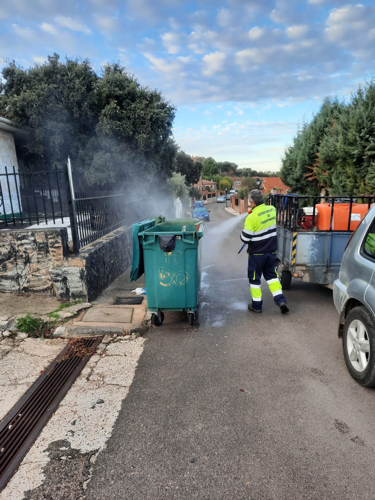 De manera semanal y permanente desde entonces, finales de febrero, los operarios del Ayuntamiento desinfectan el viario público del pueblo los lunes, miércoles y viernes, entre las siete y las nueve de la mañana. Esta misma labor, se lleva a cabo semanalmente, los martes y los jueves, en la Urbanización Las Fuentes. Y, a diario, se desinfectan todos los contenedores de basura del pueblo, en los dos núcleos de población.