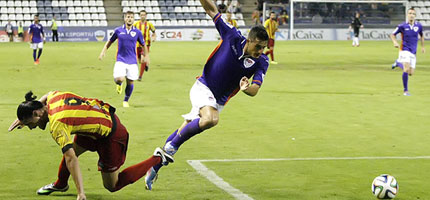 De ahí al descanso, el cuadro catalán pudo marcar el segundo en una falta lejana de Osado que terminó en la madera, si bien el Dépor también tuvo el empate en otro pase de Manzano al que no llegó por poco el citado Marc Mas, muy activo a lo largo del primer periodo.