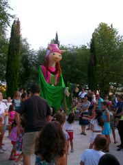 ‘El Faldón de la Locura, de la Pícara Locuela de Segovia, fue la puesta en escena encargada de inaugurar la undécima edición del Festival de títeres y teatro en la calle. En los siguientes días, se presentaron sobre las tablas del escenario de El Cantillo, a las 19,00 horas, las compañías Zurramacatillo de La Rioja y la Domadora de Cuentos con un espectáculo de cuentos muy tiernos para los más pequeños que finalizó con el desfile de unos gigantes y bicicleta musical.