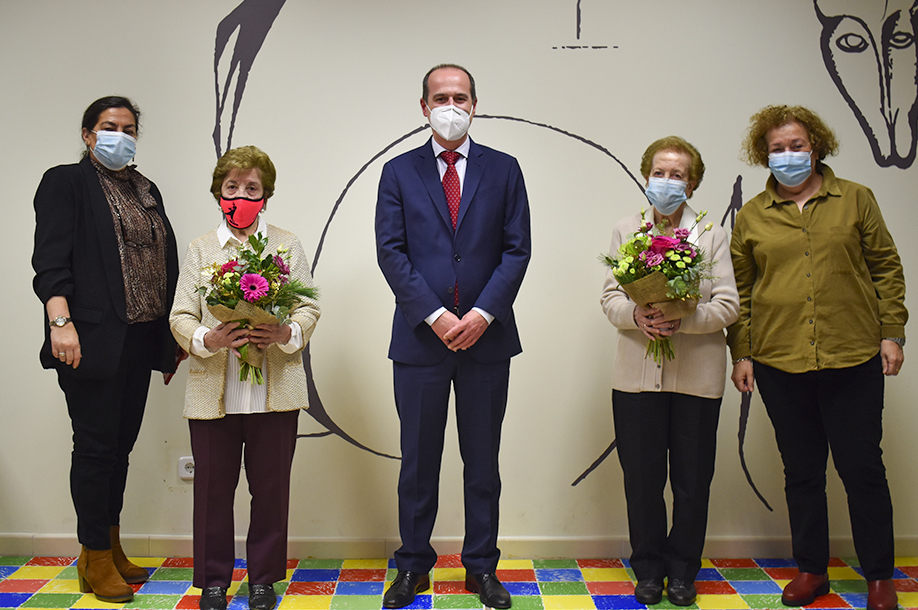 Las hermanas de Blas, María y Ascen, recogían de manos del alcalde dos ramos de flores después de que hace unos meses recibiesen una placa en nombre de la ciudad en una visita al despacho consistorial. Una de ellas, María, se reconocía emocionada y recordaba y dedicaba estas muestras de cariño al recientemente fallecido, Emilio Cobos. “Nos jubilamos por obligación, sin que pudiésemos imaginar la que vendría después con la pandemia. Aún así, no vamos a quedarnos en casa”.