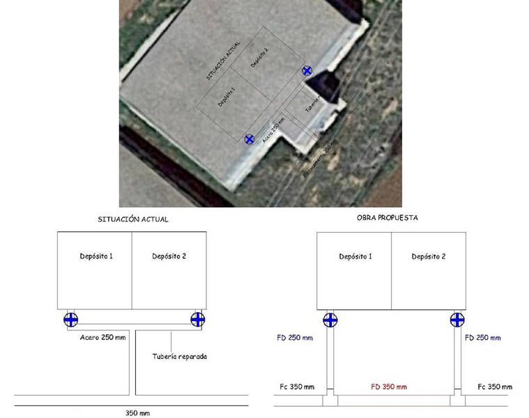 La actuación contempla la instalación de dos tuberías nuevas de 250 milímetros para la salida del agua del depósito y con conexión independiente con la red general, que dispone de una tubería de 350 milímetros. "De este modo, en caso de avería, no se cortará el suministro de manera total del depósito tal y como pasa actualmente, sino de los almacenes que se vean afectados".