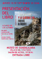 El Museo de Guadalajara comienza de nuevo su programación de actividades tras el período estival con la presentación libro “Guadalajara y la Guerra Civil, frente a frente”, de los autores Ricardo Castellano Ruíz de la Torre y Miguel Ángel Rodríguez Pascua, que tendrá lugar el jueves 18 de septiembre a las 19:30 horas.