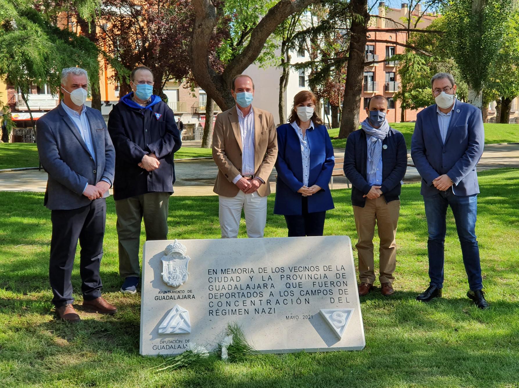 El presidente de la Diputación, José Luis Vega, el alcalde de Guadalajara, Alberto Rojo, y el presidente de las Cortes de Castilla-La Mancha, Pablo Bellido, y Xulio García, representante del Foro por la Memoria y de la Amical de Mauthausen en Guadalajara, han inaugurado en el parque de la Concordia de la capital un monolito en memoria, reconocimiento y homenaje a los hombres y mujeres de la provincia que fueron deportados entre 1940 y 1945 a los campos de concentración nazis, donde fueron víctimas del horror y los crímenes del Holocausto organizado por aquel régimen.