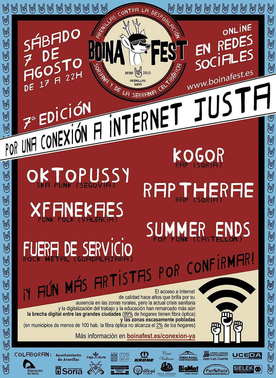 El próximo 7 de agosto se celebrará la 7ª edición del Boina Fest, el 1er festival contra la despoblación soriana y de la Serranía Celtibérica. Este año, dada la actual crisis sanitaria, volverá a ser online y, además de luchar contra la despoblación, alza la voz para reivindicar un acceso a Internet justo y de calidad en las zonas rurales.