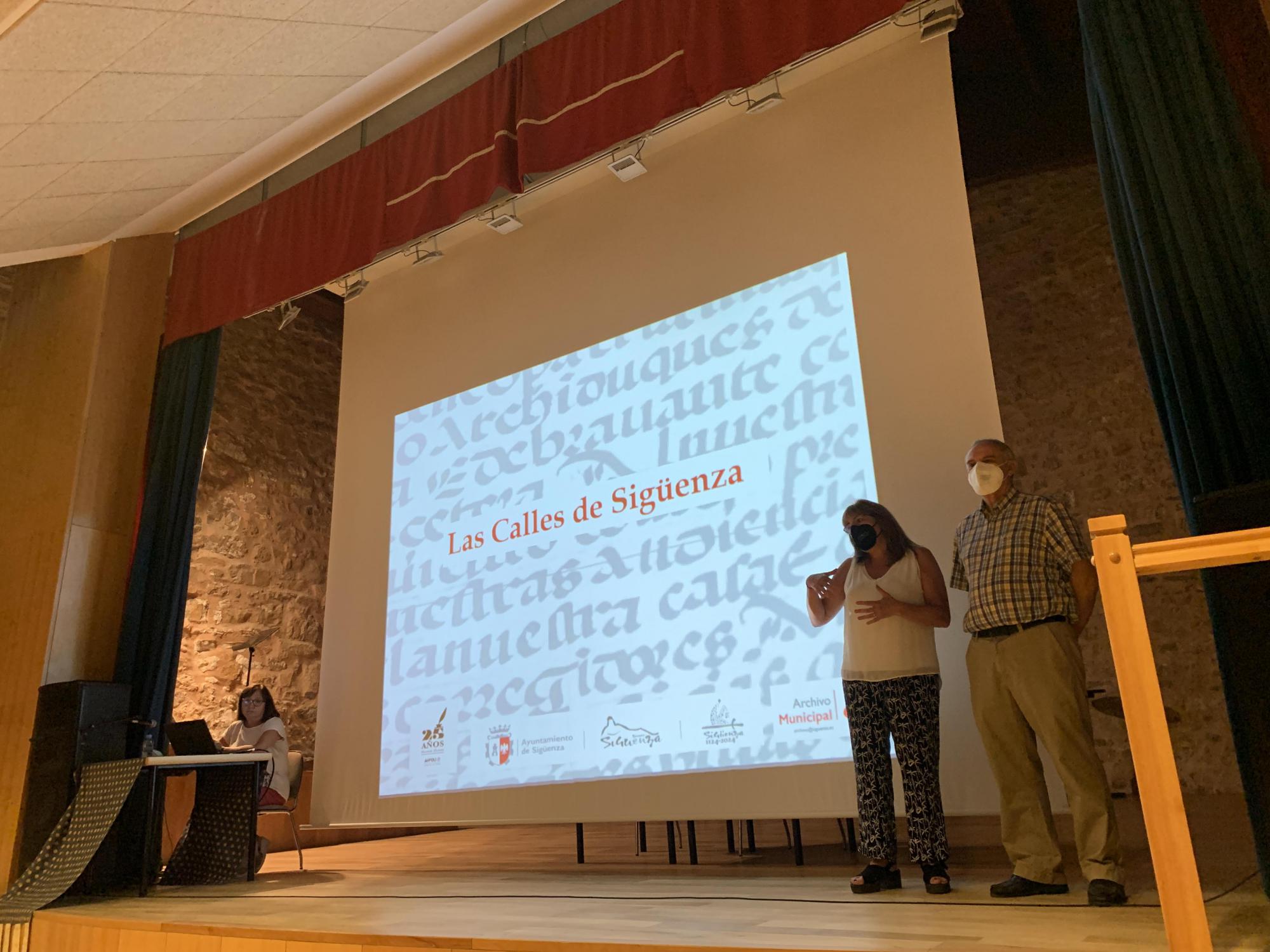 Empezando por El Castillo, descendiendo por las Travesañas que nunca perdieron ni modificaron sus nombres hasta La Alameda, para llegar incluso a las urbanizaciones seguntinas, construidas en los años ochenta y noventa del siglo XX, la archivera fue describiendo con detalle los nombres de los personajes que dan nombre a las calles, recordando, someramente sus biografías y los hechos que motivaron su dedicatoria.