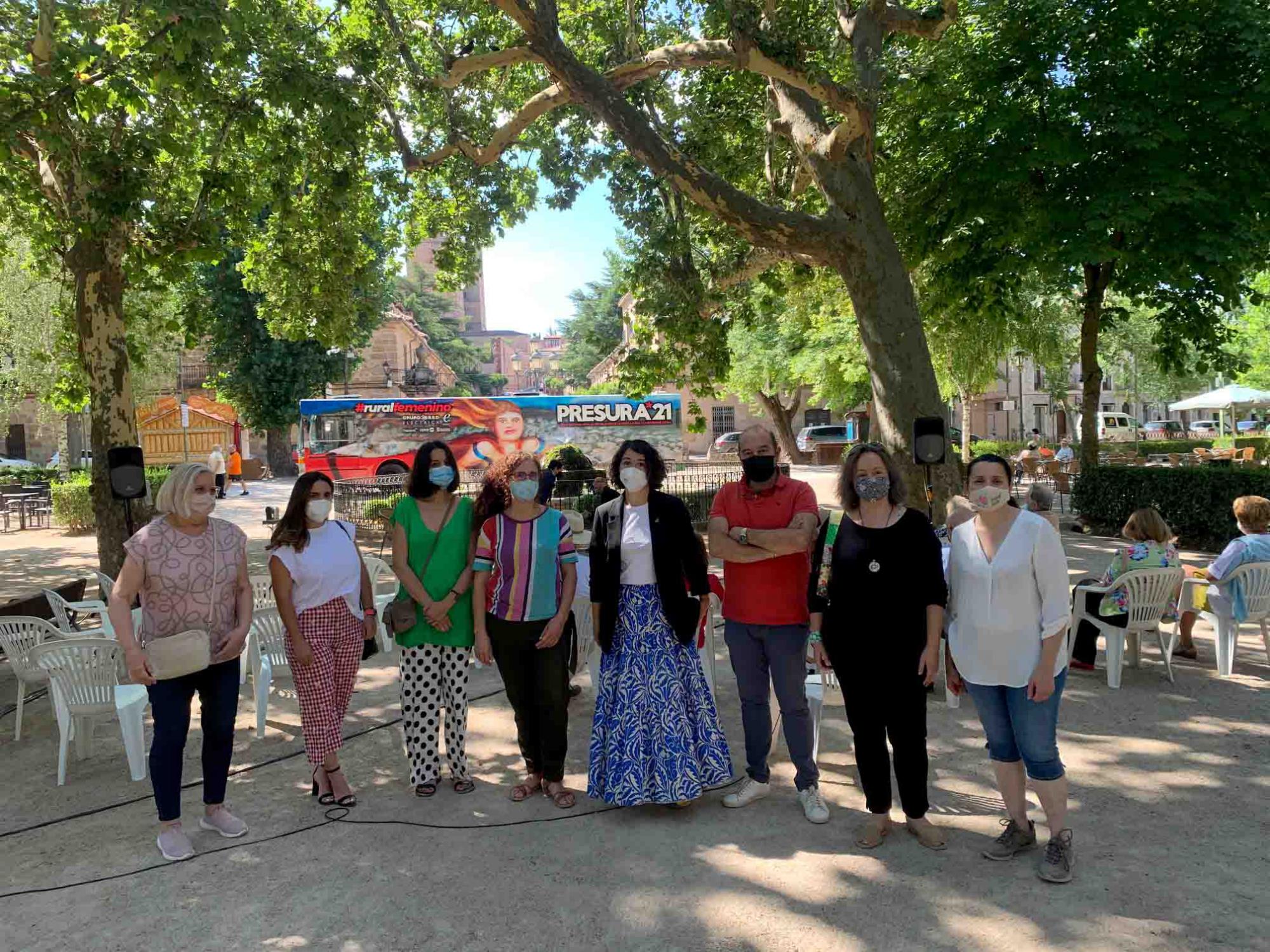 El Autobús de la Repoblación forma parte de las actividades de Presura, la Feria nacional dedicada a la lucha contra la despoblación que cada año se celebra en Soria. En 2021, y tras un año de suspensión por la pandemia, llegará a su V Edición. La iniciativa, que organiza la asociación El Hueco, gira este año con el lema #ruralfemenino. Hoy, hasta Sigüenza se han acercado el presidente de El Hueco, Joaquín Alcalde, y el comisionado de Castilla-La Mancha para la Despoblación, Jesús Alique. En una rueda de prensa previa, acompañados por la anfitriona de la iniciativa, la alcaldesa de Sigüenza, María Jesús Merino, han presentado los objetivos de la gira para después dar paso a un coloquio, conducido por el periodista Roberto Ortega. Hasta seis mujeres de la comarca han presentado sus proyectos de emprendimiento en la parada seguntina de la gira, que se ha retransmitido en directo por el canal PresuraTv.