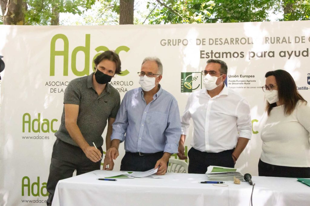 En el acto de la firma de los contratos de los proyectos, que ha tenido lugar en el parque del Badiel de Muduex, han estado presentes el presidente de ADAC, Vicente Hita; el director general de Desarrollo Rural de Castilla-La Mancha, José Juan Fernández, y la alcaldesa de Muduex, Soledad Canalejas, así como los emprendedores de los 19 proyectos que ha suscrito los contratos con ADAC.