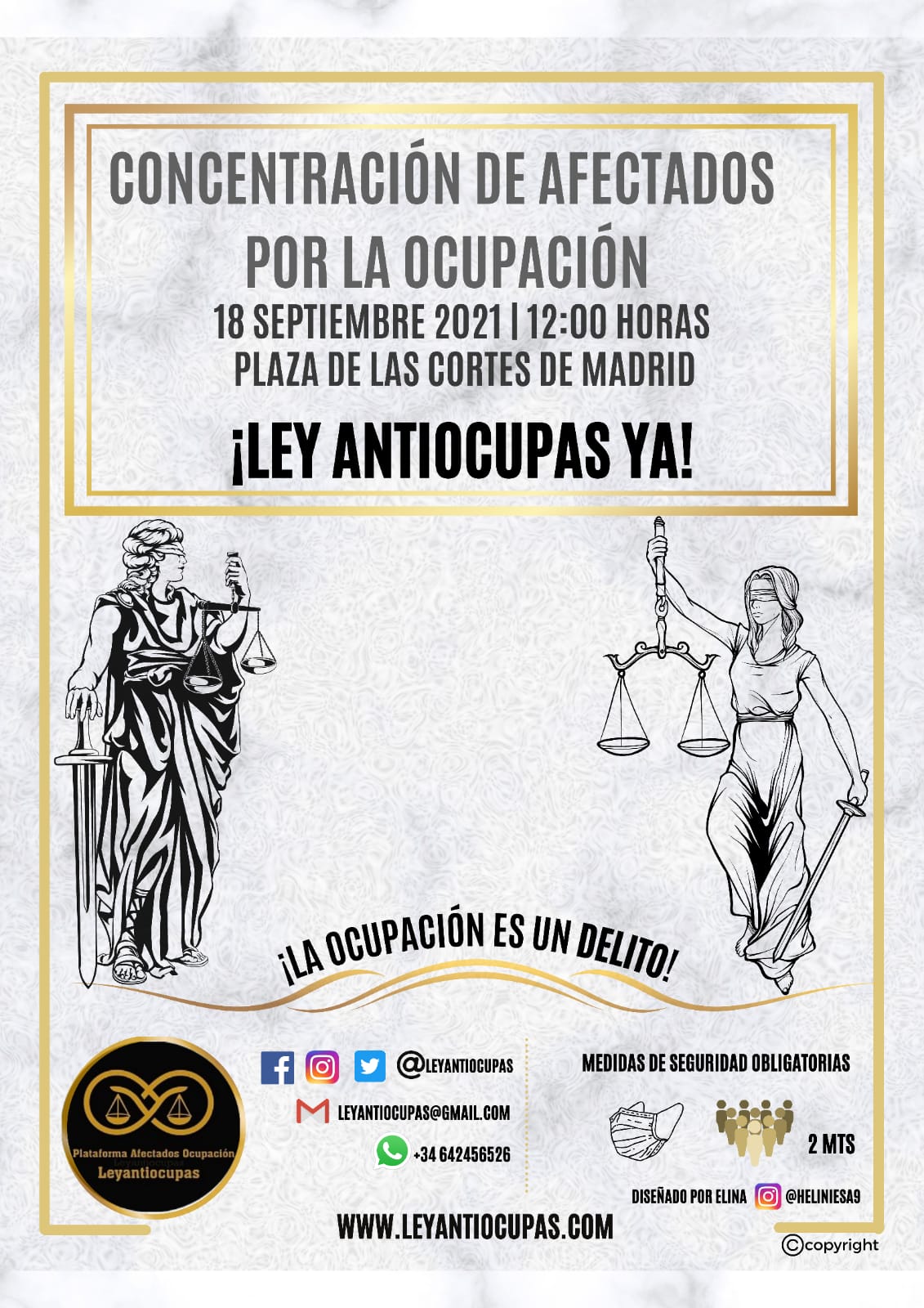 Por todo ello, desde la plataforma nacional recuerdan que “el próximo 18 de septiembre, a las 12 horas, la Plaza de las Cortes de Madrid será el escenario de un grito de indignación ante la injusticia que millones de españoles venimos padeciendo. Un grito de hartazgo y de exigencia que mantendremos en las calles hasta que el Boletín Oficial del Estado publique una Ley que restituya el derecho esencial a la propiedad privada".
