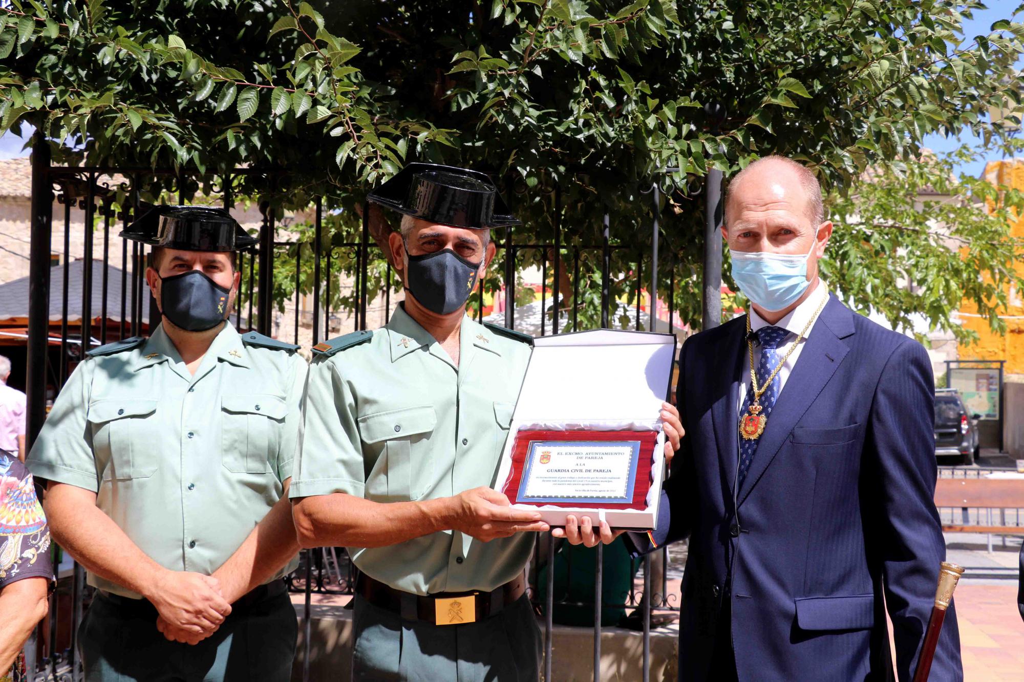 En el mes de agosto, el Ayuntamiento de Pareja ha reconocido y entregado placas a los héroes locales de la pandemia: a los sanitarios, a quienes confeccionaron mascarillas, a los agricultores que desinfectaron calles con sus tractores, a la farmacia y a las urbanizaciones. En el día de la Virgen de los Remedios, el alcalde de Pareja, Javier del Río, en nombre del pueblo, entregó la última de estas placas a la Guardia Civil, “por su trayectoria, por su actitud durante toda la pandemia, por cuidarnos, por vigilar por el cumplimiento de las normas sanitarias y de la ley, guardando nuestros pueblos, ciudades y nuestro campo, y en concreto, guardando a Pareja”.