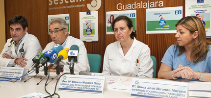 Estos datos se han dado a conocer hoy por los coordinadores de la Unidad de Trasplantes del Hospital, el doctor Eduardo Quirós, y la enfermera María José Miranda, quienes acompañados por la hematóloga responsable del servicio de Transfusión, Mª Dolores Morales, y el director médico del Área Integrada de Guadalajara, Juan Carlos Atance, han presentado la Jornada de Puertas Abiertas en el Hospital, y la mesa informativa que tendrá lugar a lo largo de toda la presente jornada.
