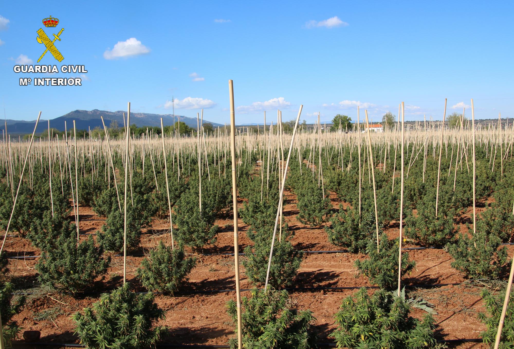 La Guardia Civil ha detenido a seis personas, cinco hombres y una mujer con edades comprendidas entre los 31 y 39 años, como presuntas autoras de un delito contra la salud pública por cultivo o elaboración de sustancias estupefacientes y un delito de pertenencia a grupo criminal tras una inspección realizada en una finca supuestamente dedicada a la plantación de cáñamo legal, llevando a cabo la aprehensión de 12.000 plantas de marihuana.