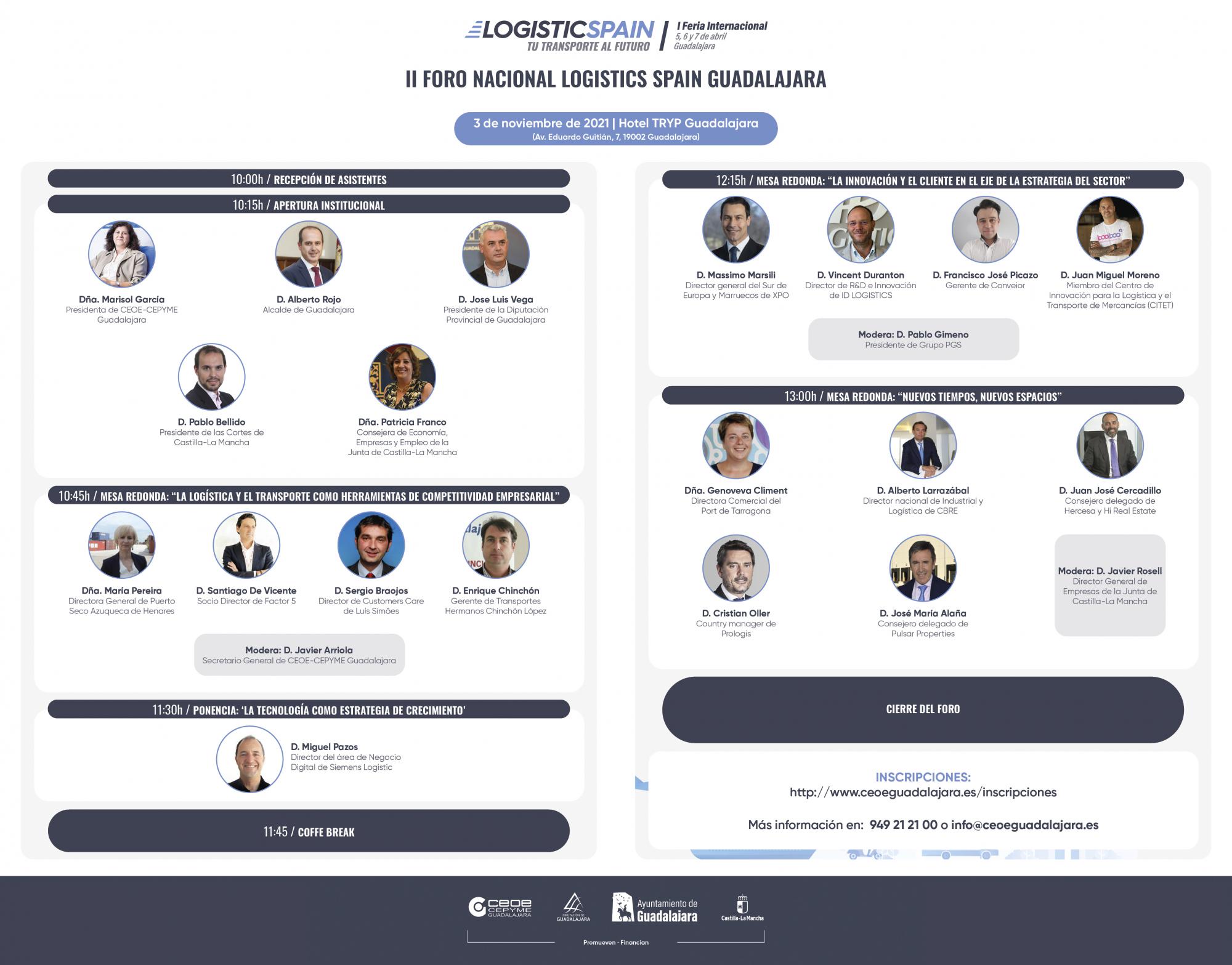 El Hotel TRYP de Guadalajara acogerá el próximo miércoles 3 de noviembre, de 10:00 horas a 14:00 horas, el II Foro Nacional Logistics Spain, que forma parte de esta iniciativa promovida por CEOE-CEPYME Guadalajara, la Diputación Provincial, el Ayuntamiento de Guadalajara y la Junta de Comunidades de Castilla-La Mancha para impulsar el sector de la logística y el transporte en el territorio.