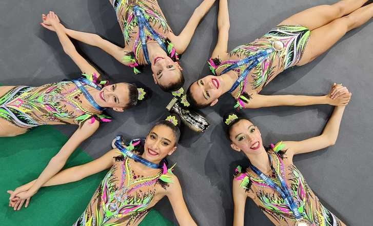 El conjunto infantil con 5 cuerdas realizó el pasado sábado dos ejercicios espectaculares, cuya suma de ambos le dieron una nota de 46,200 para subir a lo más alto del podium. Hoy domingo en la final también se han colgado la medalla de oro repitiendo una gran competición.