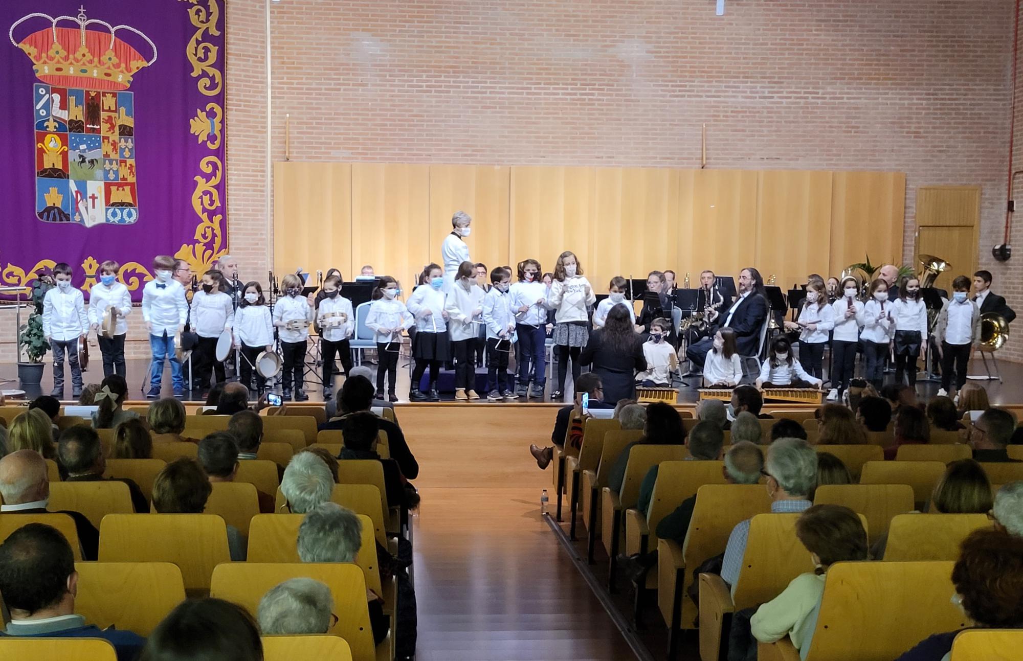 Bajo la dirección de Nuria Matamala ofrecieron una gran interpretación de un variado programa con muchas novedades y el broche final de la participación de una veintena de niñas y niños de Iniciación a la Música (6 y 7 años) en las últimas obras