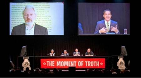 Assange, que anunció el pasado agosto que “saldría pronto” de la embajada de Ecuador en Londres, donde se encuentra asilado desde hace dos años, presentó su último libro “Cuando Google Conoció a Wikileaks” en una charla a distancia con una galería de arte de Nueva York, evento al que asistieron un centenar de personas.