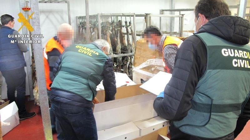 Agentes de la Guardia Civil, pertenecientes al Servicio de Protección de la Naturaleza (Seprona) de Cáceres han desarticulado una organización criminal dedicada a una supuesta actividad fraudulenta relacionada con el sector cárnico en la provincia cacereña. Han sido detenidas cuatro personas e investigadas otras cinco y se ha procedido a la incautación de 1.790 jamones y paletas, 760 kilos de diferentes embutidos y 4.500 kilos de carne congelada procedente del despiece del cerdo ibérico. Los detenidos tenían vinculaciones directas con empresas asentadas en distintas provincias, incluida la de Toledo.