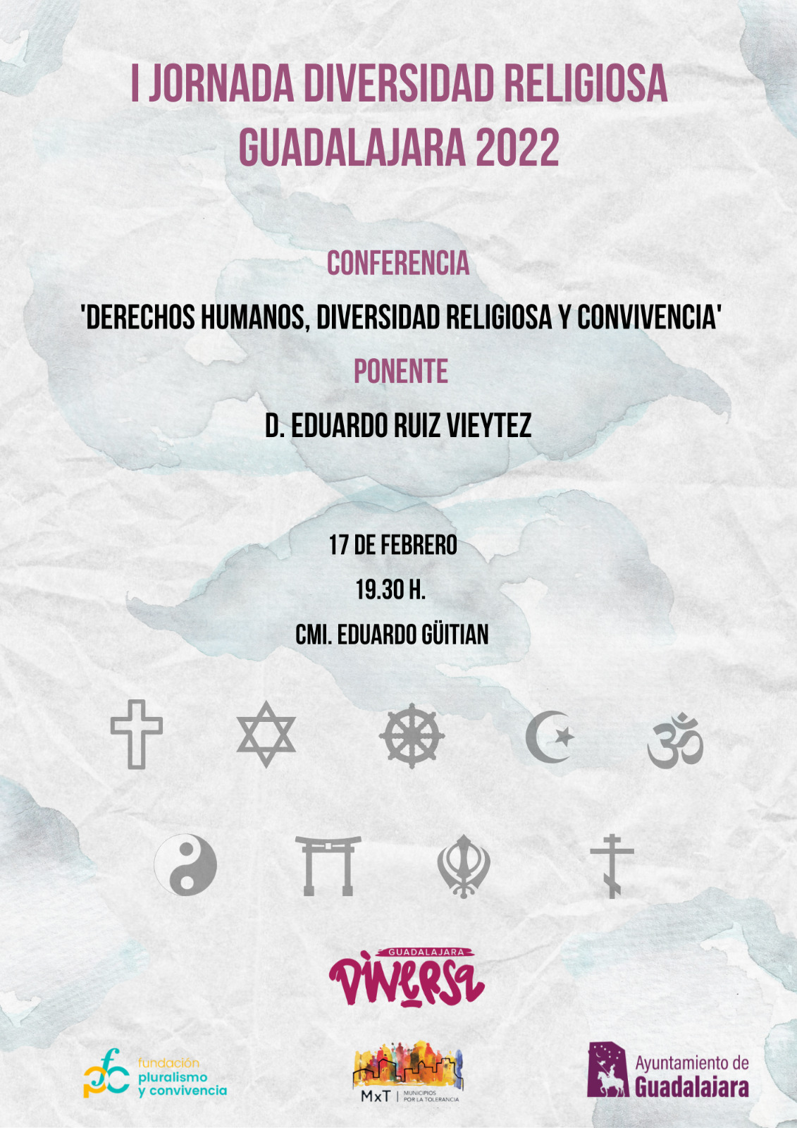 El Ayuntamiento de Guadalajara ha organizado, para el próximo día 17 de febrero, la I Jornada Diversidad Religiosa, con una conferencia, ‘Derechos humanos, diversidad religiosa y convivencia’, impartida por Eduardo Ruiz Vieytez, profesor de la Universidad de Deusto y con una amplia trayectoria en esta materia.