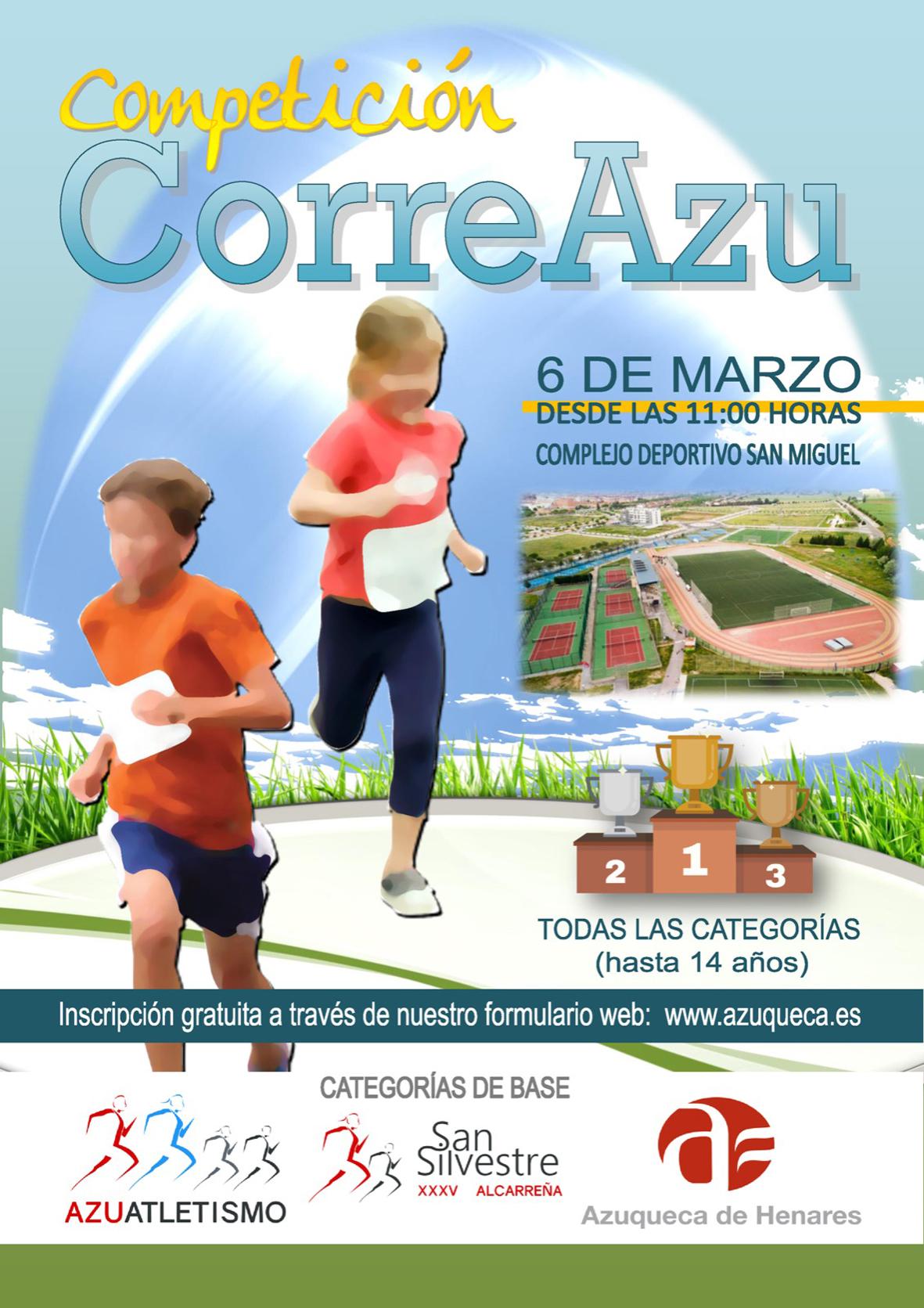 El Ayuntamiento de Azuqueca de Henares y la asociación Azuatletismo organizan el domingo 6 de marzo, a partir de las 11 horas, en el complejo San Miguel la competición CorreAzu, dirigida a las categorías base desde Chupetín (nacimiento entre 2018 y 2022) y hasta 14 años (2009 a 2010), tanto en masculino como en femenino. "En la pasada edición de la San Silvestre Alcarreña, por responsabilidad y para la prevención de contagios por COVID-19, solo se celebró la prueba absoluta y se suspendieron las carreras para menores, que impulsamos ahora, cuando la situación sanitaria ha mejorado", explica el concejal de Retos Deportivos, Enrique Pérez de la Cruz.