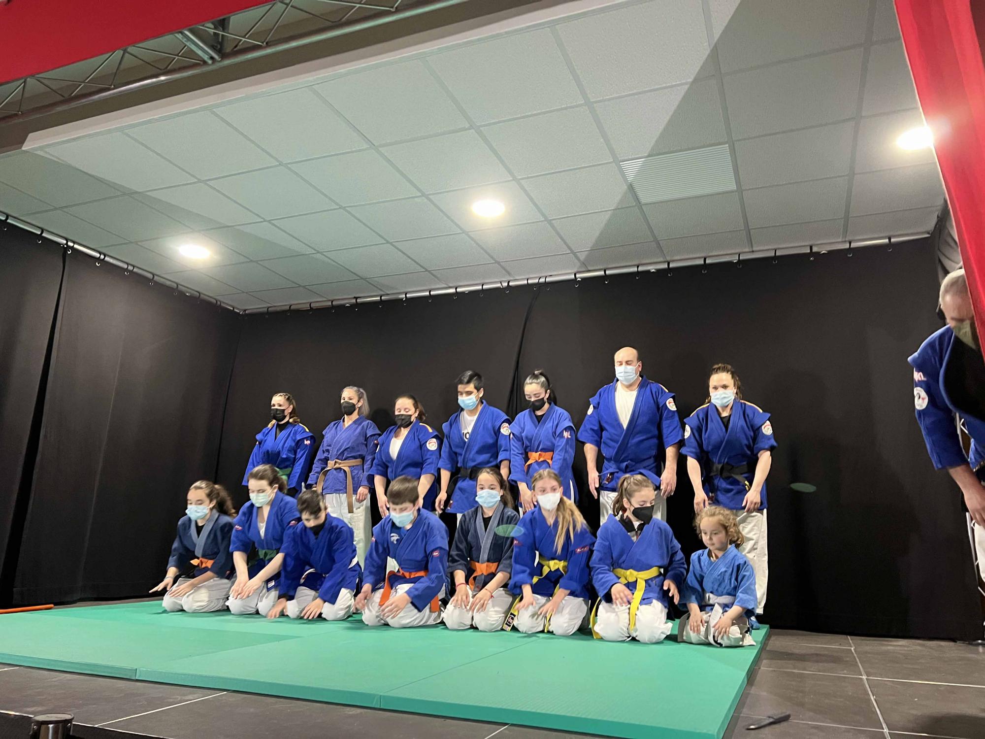 Integrantes del club de todas las edades mostraron algunas de las técnicas que entrenan semanalmente en el Polideportivo Virgen de la Luz de Almonacid de Zorita, ya en las cercanías de la próxima participación del Club en el Campeonato de la Comunidad de Madrid (8 de mayo) de esta disciplina