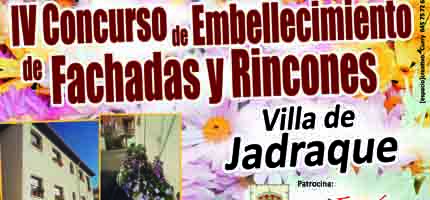 El Ayuntamiento de Jadraque, a través de la Concejalía de Cultura, ha convocado el IV Concurso de Embellecimiento de Fachadas y Rincones "Villa de Jadraque", con la colaboración del comercio tradicional de la localidad "Fermín Llamas". El Concurso, el primero de estas características que se convocó en la provincia de Guadalajara, tiene como principal objetivo animar a los vecinos a adornar sus fachadas y balcones para lograr, entre todos, que disfrutemos de un pueblo más cuidado, alegre y agradable. Se establece un único premio para el ganador, dotado con un vale por importe de 100 euros y diploma. Todos los participantes recibirán un obsequio y el Ayuntamiento agradece a todos los concursantes en esta y anteriores ediciones su participación en esta convocatoria.