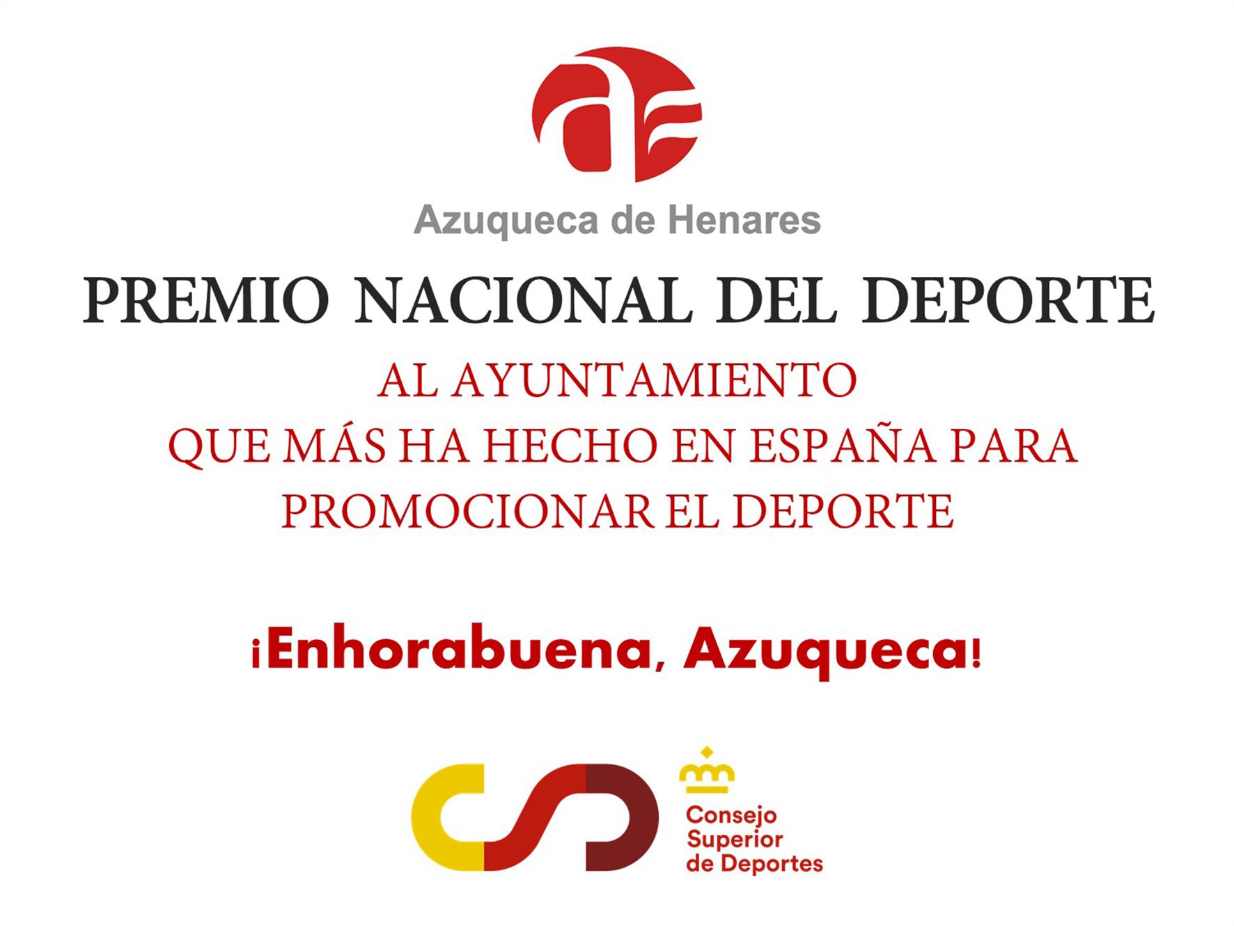 El Consejo Superior de Deportes falló ayer por la tarde que el Ayuntamiento de Azuqueca de Henares reciba de manos de la Casa Real el premio a la entidad local española que más ha destacado por sus iniciativas para el fomento del deporte, en la promoción y organización de actividades y en la dotación de instalaciones deportivas municipales.