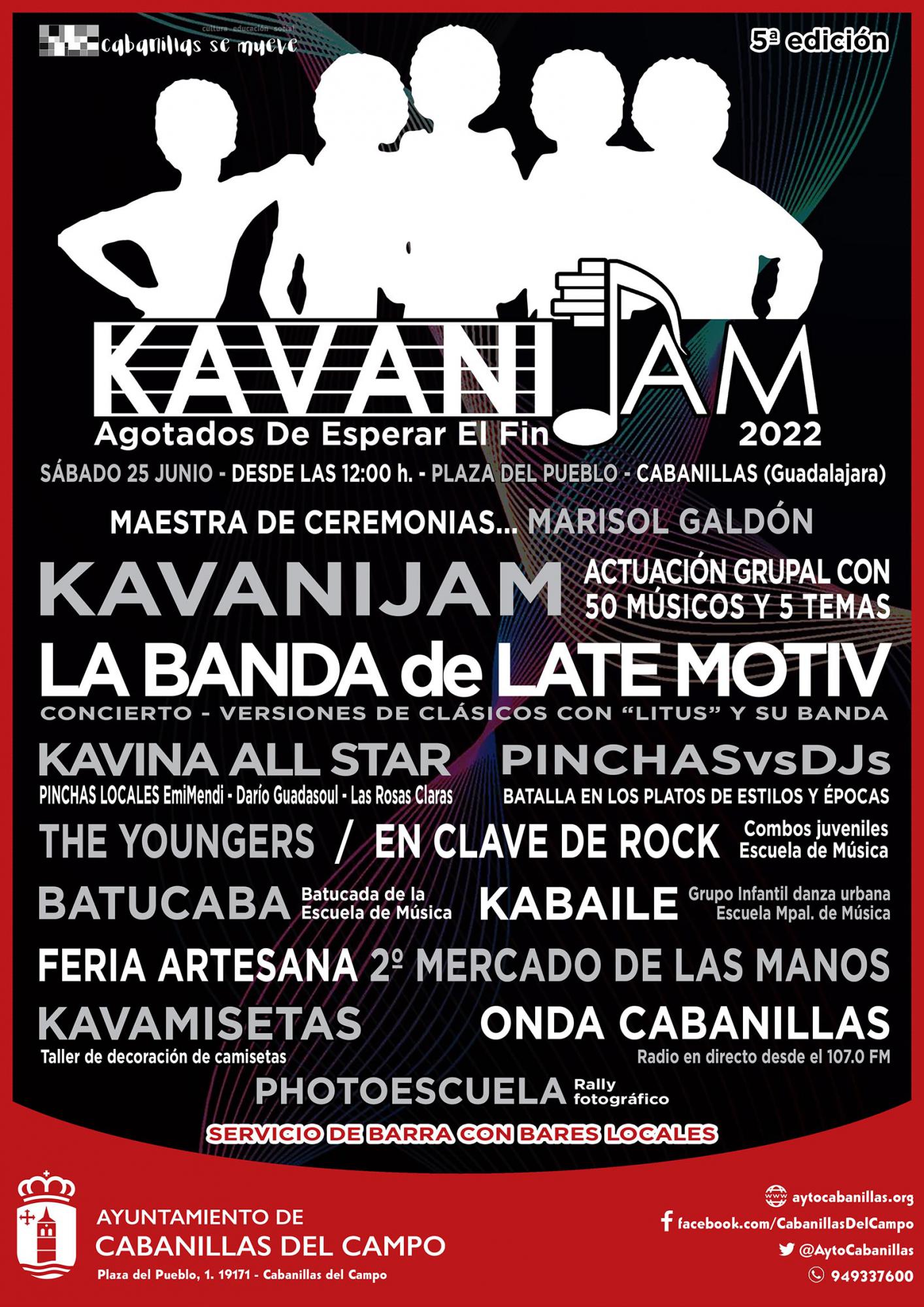 Cabe recordar que «KavaniJam» es un festival que se organiza en Cabanillas al inicio de cada verano, y que impulsan un grupo de músicos aficionados y amantes de la música de la localidad, en colaboración con la Concejalía de Festejos del Ayuntamiento. El acto central del evento es la interpretación al unísono de temas de rock populares a cargo de los participantes, que se suben a un mismo escenario.