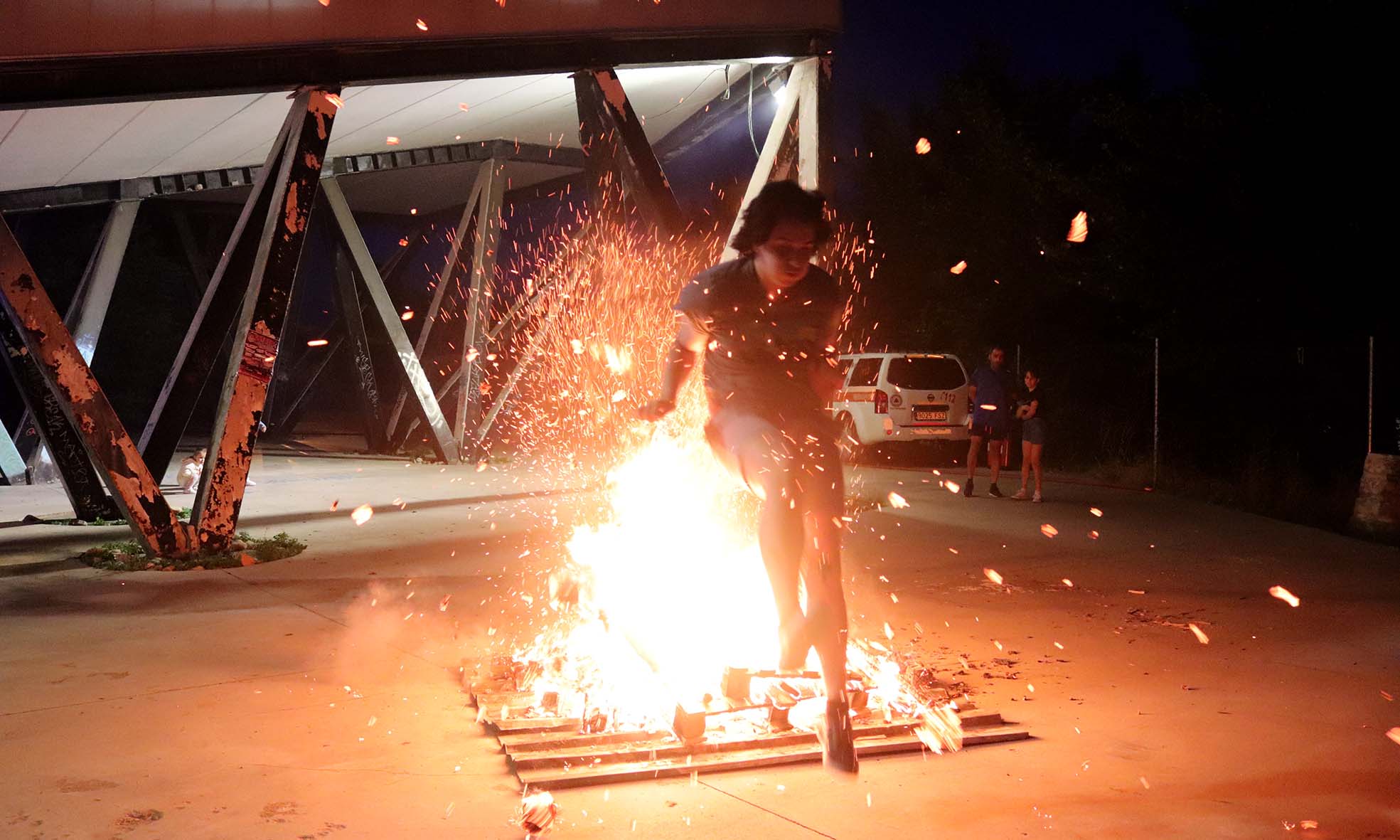 Mucho público joven se acercó a los bajos del centro cabanillero, para disfrutar de una enorme hoguera prendida y controlada en todo momento por voluntarios de Protección Civil. Tras admirar la altura de las llamas, los más intrépidos saltaron sobre el fuego y las brasas, cuando la hoguera empezó a tener una altura asumible para los más intrépidos.