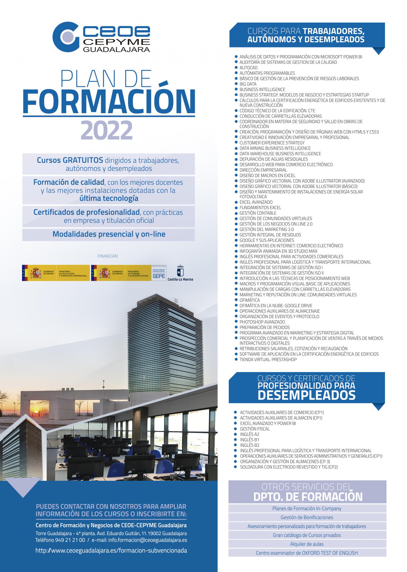 Aquellos interesados en conocer la programación completa pueden ampliar información o inscribirse en el centro de formación y negocios de CEOE-CEPYME Guadalajara, ubicado en la Avda. Eduardo Guitián, 11, en la Torre Guadalajara 4ª planta o a través del teléfono 949-21-21-00 o en el correo electrónico [email protected] o en http://www.ceoeguadalajara.es/formacion