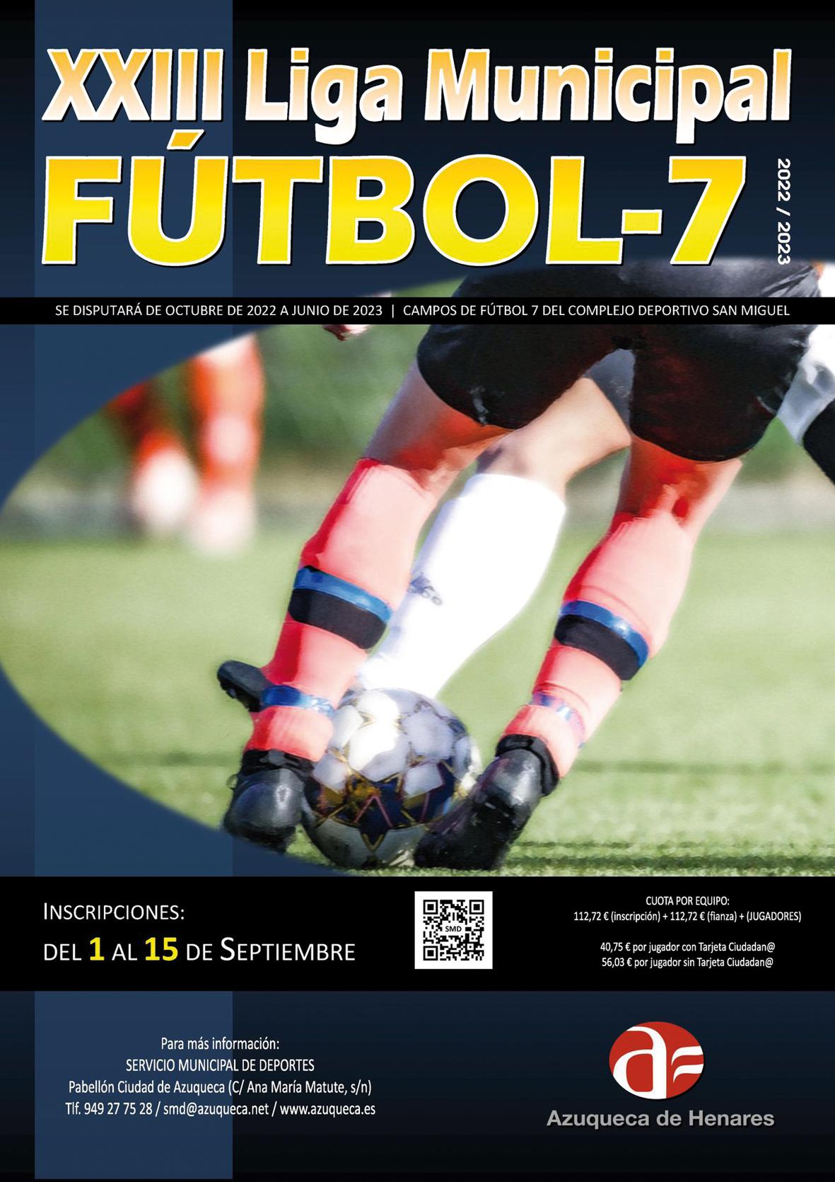 Este jueves, 1 de septiembre, se abre el plazo de inscripción en la edición número 23 de la Liga Municipal de Fútbol-7, que impulsa el Ayuntamiento de Azuqueca de Henares. Los equipos interesados en sumarse a esta competición tienen de plazo hasta el día 15 de septiembre para formalizar su alta.