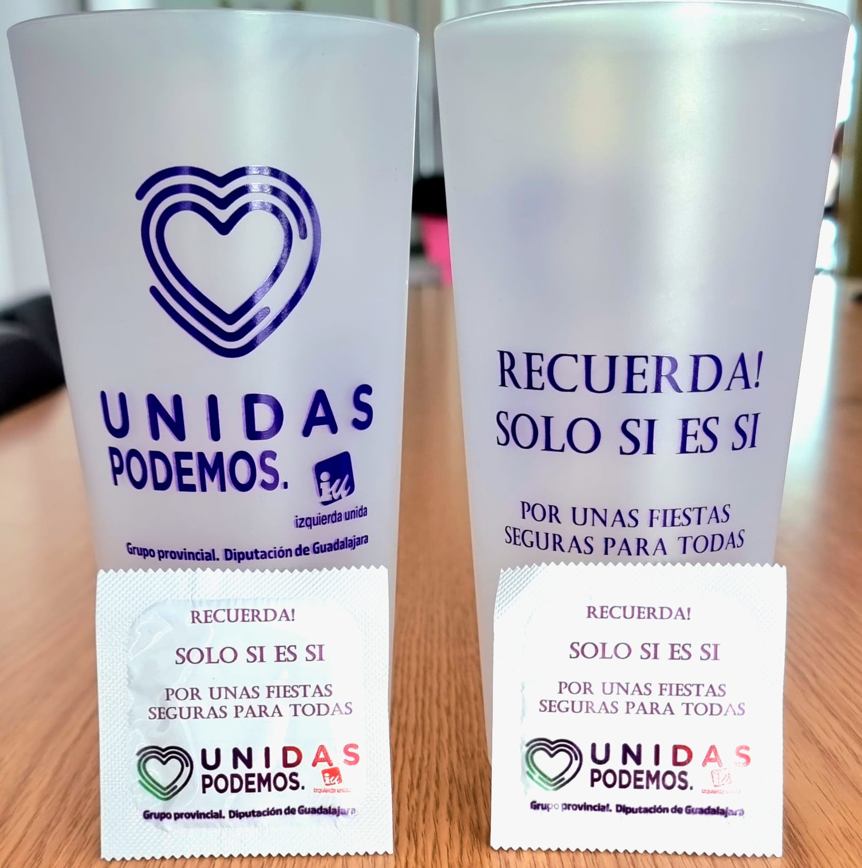Unidas Podemos - Izquierda Unida de Diputación de Guadalajara repartirá en fiestas vasos reutilizables y preservativos con el mensaje "Solo sí es sí"