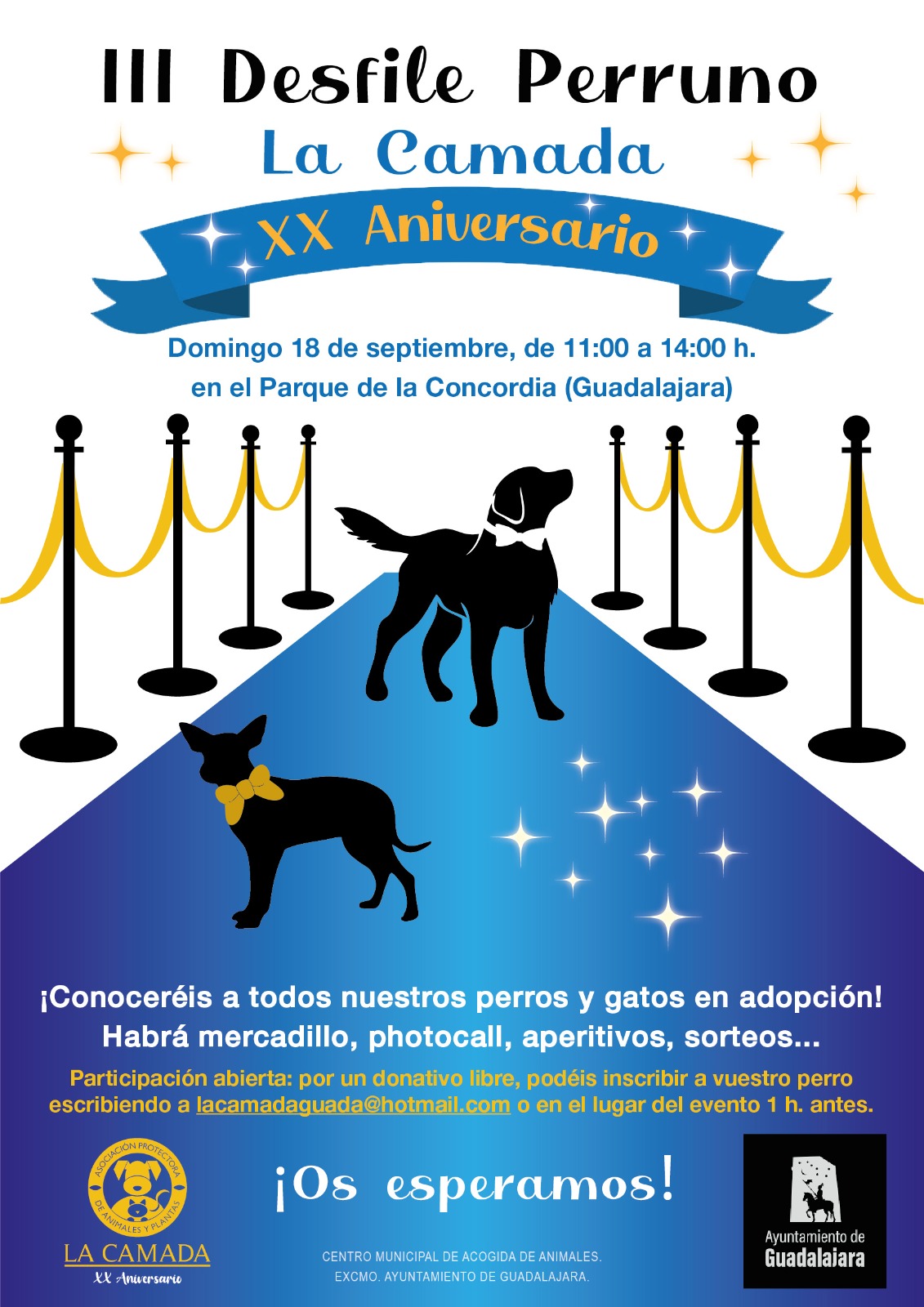 Además, este año será muy especial, ya que se cumple el XX Aniversario de la inauguración del Centro Municipal de Acogida de Animales Abandonados de Guadalajara. Desde el 15 de junio de 2002, La Camada ha estado al frente del albergue municipal, rescatando perros y gatos abandonados y trabajando por darles una nueva vida. Así que habrá también un rincón con recuerdos de estos 20 años de labor y de segundas oportunidades para muchos peludos que han formado, y forman parte, de la familia de La Camada.