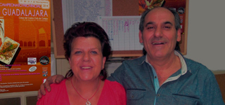 La pareja formada por Carmen Sánchez y Pedro Jurado en la fase local de Cabanillas del Campo, penúltima jornada del VII Circuito Provincial de Mus que organiza la Diputación de Guadalajara con la colaboración de la Asociación Alcarreña de Mus que se jugó en el restaurante Centro de Día.