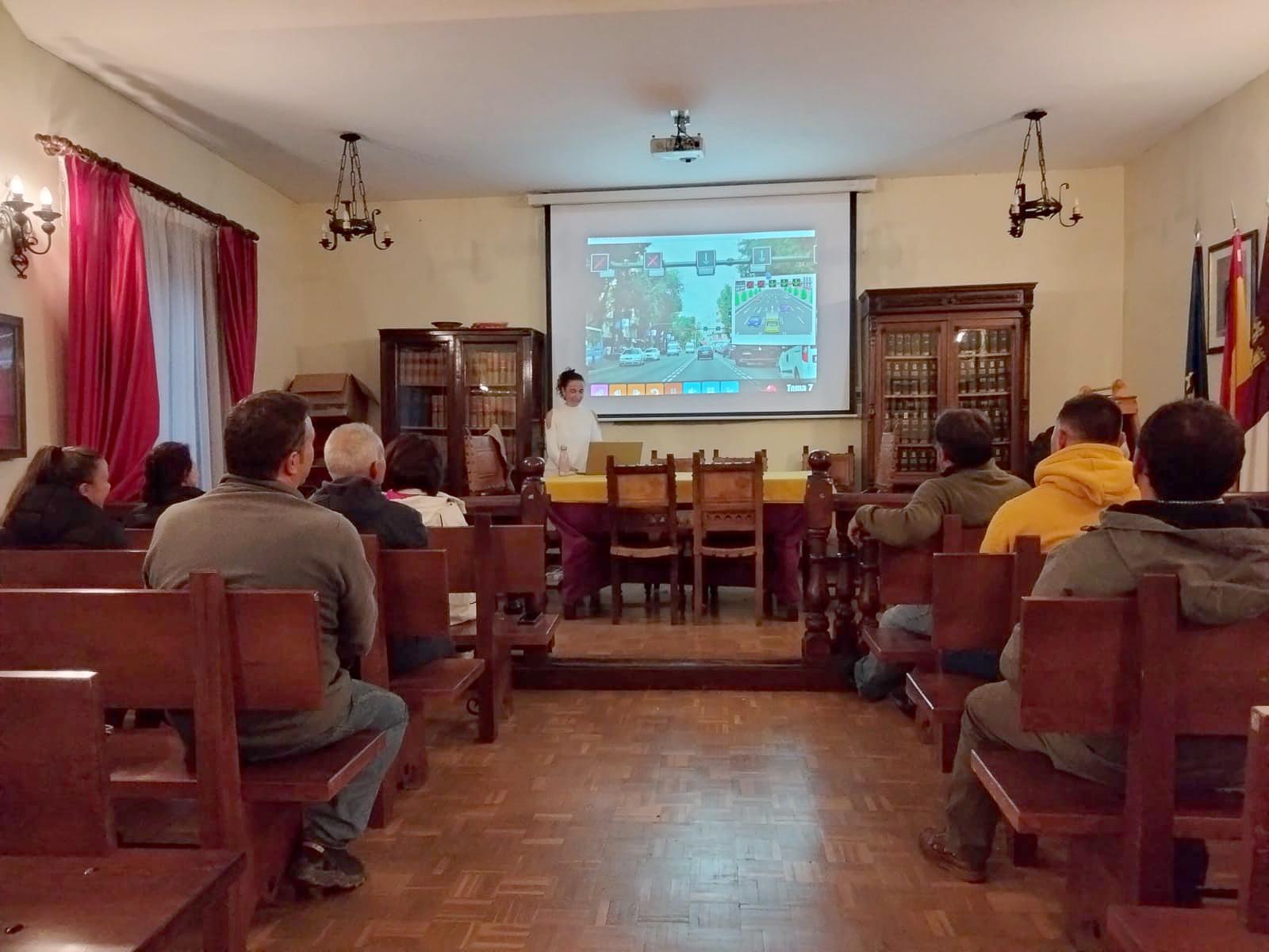 Ante el éxito de la primera convocatoria, acaba de comenzar una segunda. En el salón de plenos del Ayuntamiento de la villa serrana, la profesora de autoescuela Raquel Richarte está impartiendo de nuevo clases intensivas para obtener los conocimientos teóricos necesarios para conseguir el carnet de conducir de coche (permiso B1).