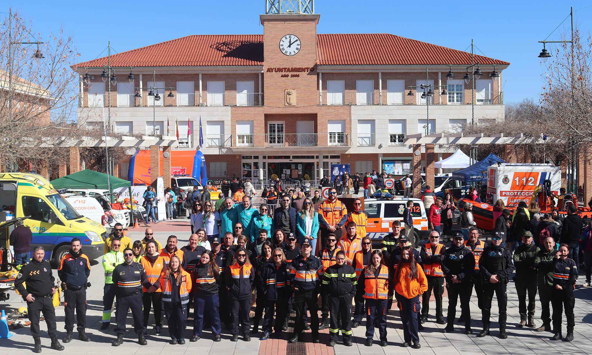 Se trataba de conmemorar el Día Internacional de la Protección Civil (que se celebra cada año el 1 de marzo), y a la cita acudieron, por un lado, numerosas agrupaciones de «protes» de la provincia, de localidades como Guadalajara, Azuqueca, Chiloeches, Fontanar, Pioz, Quer o Marchamalo. Además hubo presencia de distintas unidades de otros cuerpos de seguridad y de diversas entidades: Coches y motos de la Policía Local de Cabanillas; vehículos y material de la Policía Nacional (que trajo hasta un robot del servicio anti explosivos «Tedax»); ambulancias de soporte vital básico del SESCAM; vehículos de los bomberos forestales del Plan Infocam, todo terrenos de los agentes medioambientales del Gobierno Regional… y también estuvo presente, realizando un taller, la Asociación Críticos y Emergencias, conformada por sanitarios implicados en la difusión de la formación en reanimación cardiopulmonar (RCP).